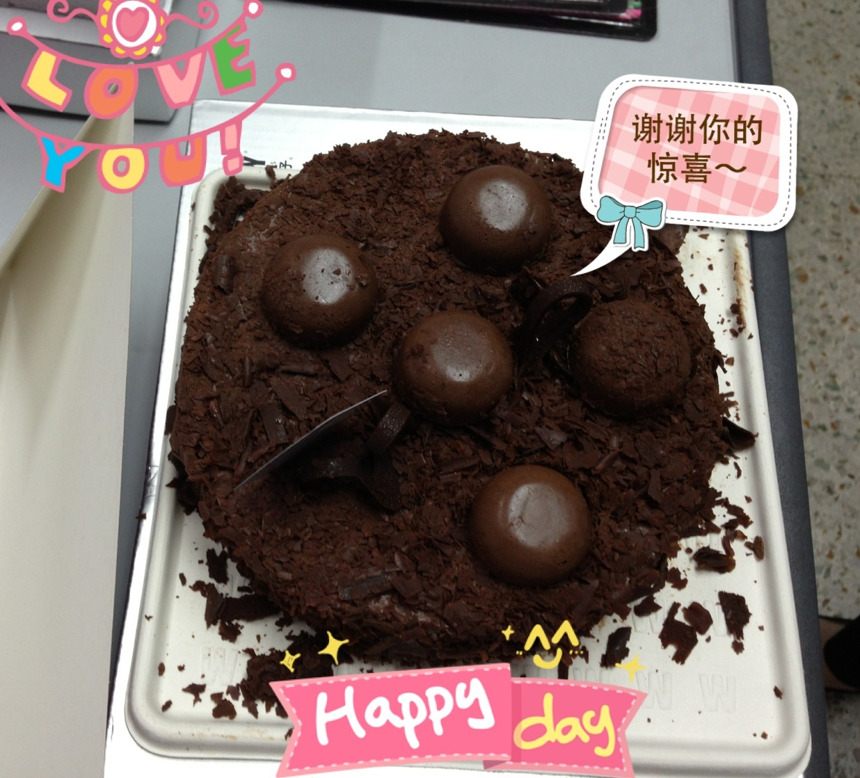 今天莫名的收到两份蛋糕?啊?晕菜@_@ 原来你没有忘记今天这个只属于我的节日? 谢谢你给我的惊喜?让我很意外?也很让我感动 ?[害羞][害羞][害羞]????????????????