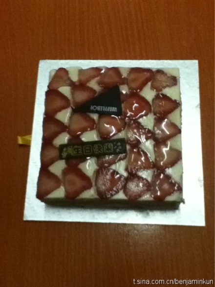自从吃了这个草莓蛋糕后,再也不吃别家的草莓蛋糕了,每次给人推荐,都是窝夫小子的这款。特别清淡,感觉很好。这还是通过微博订购的哦!