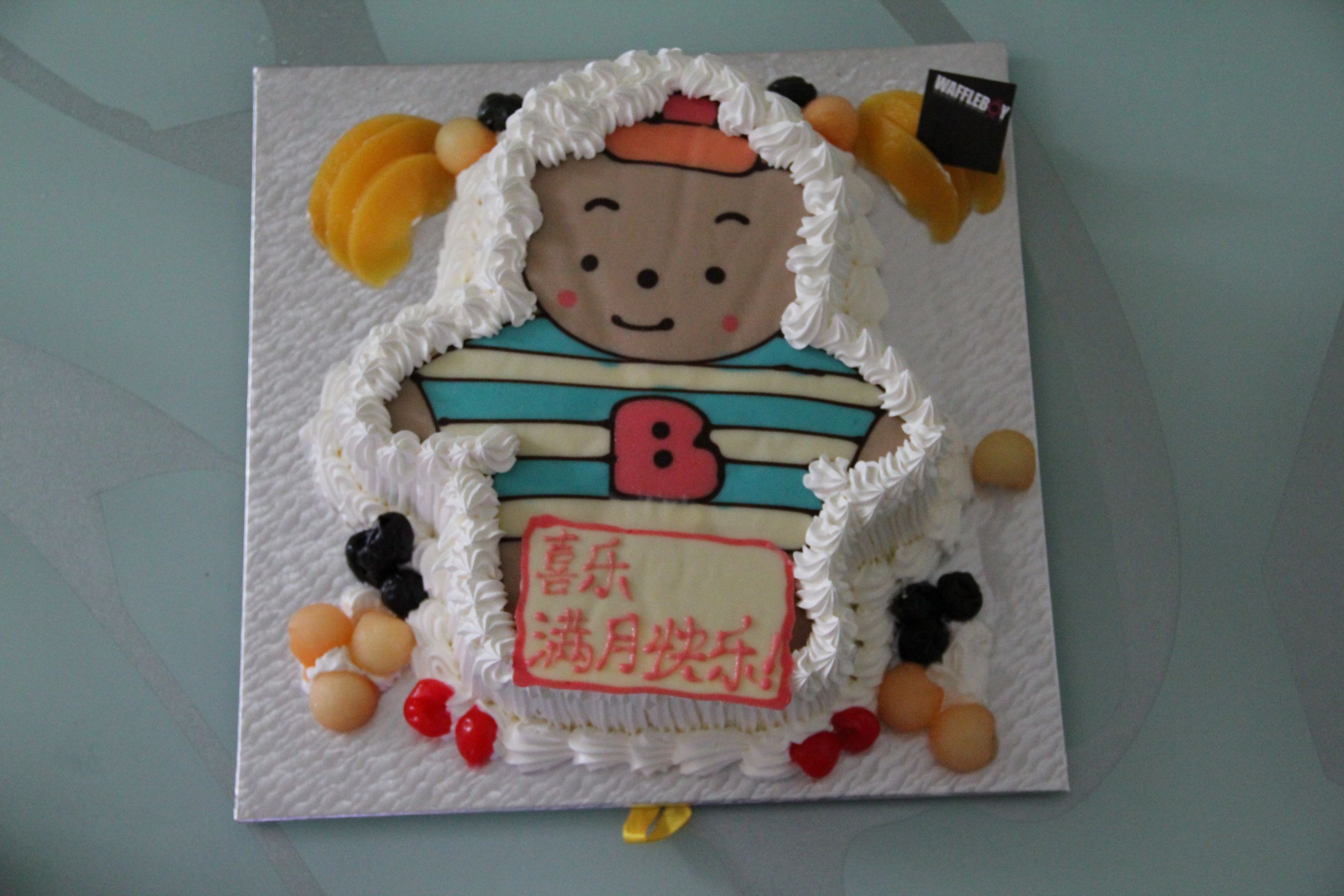 闺女的满月蛋糕,实在太可爱了,也把这张照片作为了女儿满月照相册的封底,有创意吧!!!成为她终生的纪念,相信她长大也会爱吃窝夫小子的蛋糕,希望她的每个生日都有可爱的窝夫小子蛋糕一起度过哦。
