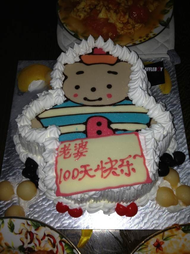 5月28日是我和老公结婚纪念日100天,老公给可以个很大的 surprise,一只乖乖熊的可爱蛋糕,窝夫小子的蛋糕的蛋糕真是没话说,先说他的刀叉,盘子,质量非常好,一看就是高档的,和现在一些连锁的蛋糕店的餐具比,质量高出很多,他的奶油香而不腻,以前也经常吃窝夫小子的蛋糕,从来没让我失望过。送货的速度及包装的完整。我相信,只要买过窝夫小子,就会一如既往的支持