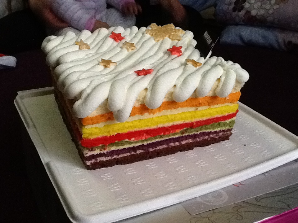 家人生日一直都是订窝夫小子,选择很多,现在宝宝出生了,过生日时正好赶上彩虹蛋糕,也给她订,色彩斑斓的颜色他很喜欢,不甜的味道小宝宝正好吃!