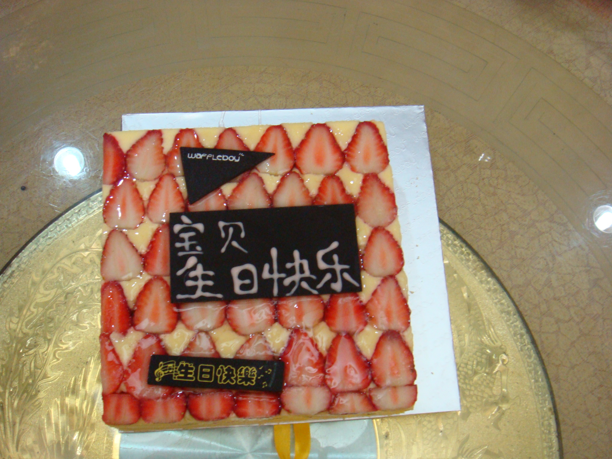 我定窝夫蛋糕很多次了,今天找了半天,竟热没有照片,遗憾呀,我女儿明天生日,订了个乖乖熊,女儿自己挑的,我们一直吃窝夫的蛋糕,不错的,口感很好,也不腻