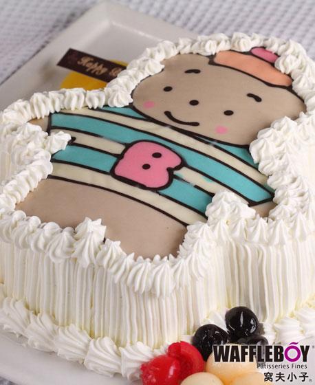给儿子订购了儿童蛋糕,好可爱的样子啊!孩子就此喜欢上了窝夫小子。