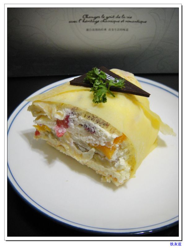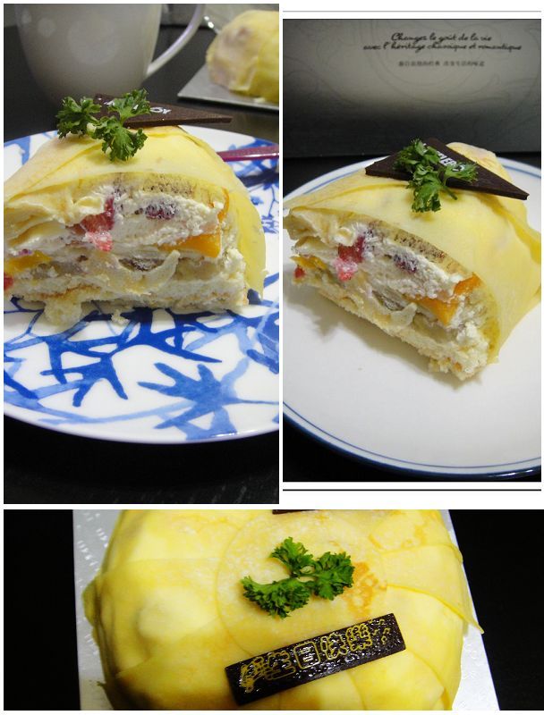 #上面一层薄薄的可丽饼,里面塞满香蕉草莓猕猴桃各种我大爱的水果,绵软清香,甜而不腻,我最爱的蛋糕#